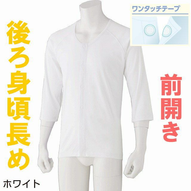 快適な日常生活をお過ごしいただけるためにお役立ていただける商品です着やすさとやさしい工夫のアイテムです着心地・機能を詰め込んだ思いやりの肌着◆ 機能を詰め込んだ思いやりの一枚 ◆縫い目が外側にあり、綿100%素材を使用した着心地の良いシャツ。【特徴】1.ワンタッチテープで留め外しが簡単。2.洗濯絵表示をプリントすることにより、肌当たりを解消。3.後見頃長めで背中が出にくい。4.動きやすいラグラン袖。お得な2枚組着脱カンタン!様々な工夫【ワンタッチテープ】着やすく脱ぎやすい親切設計!ボタンが留めにくい方は前合わせのワンタッチテープ仕様で、着替えがスムーズにワンタッチ肌着で前が開くので着脱が楽です後ろ身頃を長めにしているので、背中が曲がった方でも、背中が出にくい設計です。名前記入欄付で間違い防止名前が書けるタグ付きなので、入院や施設入居時など、脱いだ後や洗濯後も他人のものと間違うことがありません。動きやすいラグラン袖●品名/7分袖ワンタッチシャツ(2枚組)●色/ホワイト●サイズ/S・M・L・LL●材質/綿100%●生産国/中国製●仕様/タグ無し 縫目が外側で肌当たりが良い 後ろ身頃長め 洗濯機OK、抗菌防臭 大きめ名前記入欄付 後ろ身頃長め 動きやすいラグラン袖 通年用 ●説明/着心地・機能を詰め込んだ思いやりの一枚マジックテープ商品に関するご注意洗濯時にはゴミのなどの付着の原因になりますのでテープを張り合わせてください。