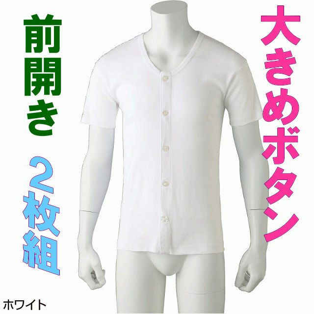 快適な日常生活をお過ごしいただけるためにお役立ていただける商品ですつかみやすい大きめのボタン。ご自分での着替えもスムーズに。手の力が弱くても開閉がラクです。留め外しがしやすい大きめボタンです。手先のリハビリにもおすすめです。【前立てすっきり仕様】●衿の位置で止めているので垂れ下がらない。●裏面を布で補強して伸びを防ぎます。●肌面が平らで痛くなりにくい。抗菌防臭、消臭機能付き。●品名/半袖大きめボタンシャツ(2枚組)●色/ホワイト●サイズ/S・M・L・LL●材質/綿100%●生産国/中国製●仕様・説明/前立てすっきり仕様 大きめボタン 名札付き 洗濯機OK 抗菌防臭+消臭 2枚組 半袖 年間素材 ●説明/つかみやすい大きめボタン仕様で着替えが簡単。