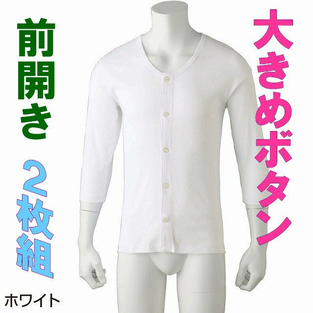 快適な日常生活をお過ごしいただけるためにお役立ていただける商品ですつかみやすい大きめのボタン。ご自分での着替えもスムーズに。手の力が弱くても開閉がラクです。留め外しがしやすい大きめボタンです。手先のリハビリにもおすすめです。【前立てすっきり仕様】●衿の位置で止めているので垂れ下がらない。●裏面を布で補強して伸びを防ぎます。●肌面が平らで痛くなりにくい。抗菌防臭、消臭機能付き。●品名/7分袖大きめボタンシャツ(2枚組)●色/ホワイト●サイズ/S・M・L・LL●材質/綿100%●生産国/中国製●仕様・説明/前立てすっきり仕様 大きめボタン 名札付き 洗濯機OK 抗菌防臭+消臭 2枚組 7分袖 年間素材 ●説明/つかみやすい大きめボタン仕様で着替えが簡単。