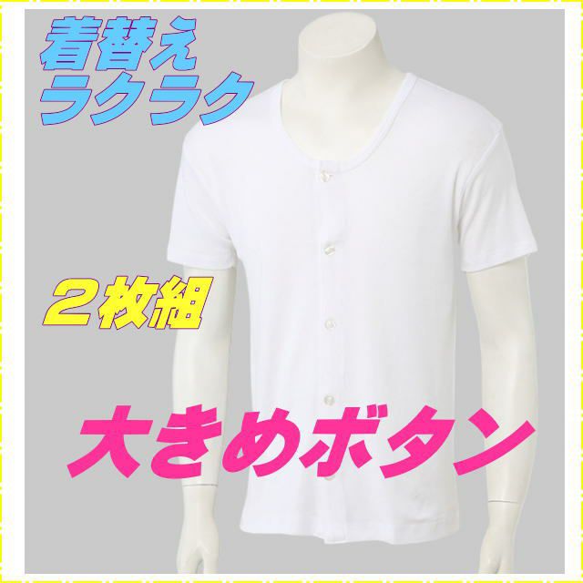 快適な日常生活をお過ごしいただけるためにお役立ていただける商品です無理のない姿勢で着用でき付き添いする方の負担も軽減できます。肌にやさしい綿100%、フライス前開き(大きめボタン)、らくらく着脱お得な2枚組売れ筋肌着です。W楽着仕様:着替えらくらく前開き式:楽に着られて着せやすい抗菌・防臭・消臭加工汗の臭い等を防ぎ、細菌の繁殖を抑制します。ゆったりとした身幅・アームホール、着心地抜群の立体裁断襟の位置で止めているので垂れ下らない裏面を布で補強して伸びを防ぎます。肌綿が平らになり痛くなりにくい●サイズ/M・L・LL●カラー/白●材質/綿100%●生産国/中国
