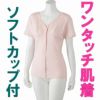 快適な日常生活をお過ごしいただけるためにお役立ていただける商品です◆ 一枚で着られるソフトカップ付き ◆Vレースがおしゃれな、肌に優しい綿100%素材を使用。【ワンタッチテープ】ボタンが苦手な方でも片手で着脱できるワンタッチテープ使用。【ソフトカップとは】胸の裏面を補強している布のことで、バストをやさしく包み、また繊維の伸びを防ぎます。やさしくバストをつつむ、ソフトカップ付。 ソフトカップ付で楽な着心地一枚で着られるソフトカップ付インナー。ワンタッチテープ 後ろ身頃長め ソフトカップ付 胸元レース付 3分袖胸元レースは直接肌にあたりません●品名/ソフトカップ付ワンタッチ3分袖シャツ●色/ピンク●サイズ/M・L・LL●材質/綿100%●生産国/中国製●仕様・説明/洗濯機OK 抗菌防臭+消臭●説明/一枚で着られるソフトカップ付インナー。 ソフトカップ付で楽な着心地 ワンタッチテープ 後ろ身頃長め ソフトカップ付 胸元レース付 3分袖マジックテープ商品に関するご注意洗濯時にはゴミのなどの付着の原因になりますのでテープを張り合わせてください。 快適な日常生活をお過ごしいただけるためにお役立ていただける商品です ソフトカップ付で胸が透けることを気にせず1枚で着用していただけます。天然素材綿100%なのでやわらかく優しい肌触り。抗菌防臭消臭加工で衛生的。 【ブラジャーを着ける煩わしさ解消。1枚で快適に着用できます。】ブラジャーのような締め付けがないので、着ていてとにかく楽チンなカップ付インナー。しかも前開きなので着替えもラクラク! ワンタッチ肌着で前が開くので着脱が楽です開け閉めがさっとできるから着替えがラクラク!着やすく脱ぎやすい親切設計!前開きなので一人でも簡単につけることができます 前後差設計で、前かがみ気味の方にオススメです後ろ身が長いので背中が出にくい設計です裾にもお洒落なレースを使っています。 前立てすっきり仕様●襟の位置で止めているので垂れ下らない。●裏面を布で補強して伸びを防ぎます。●肌綿が平らになり痛くなりにくい。●レースが肌に触れにくい仕様です。 ソフトカップ付で胸のことを気にせず1枚で着用していただけます。前後差設計で、前かがみ気味の方にオススメです後ろ身が長いので背中が出にくい設計ですワンタッチ肌着で前が開くので着脱が楽です綿100%で抗菌防臭消臭加工前立てすっきり仕様
