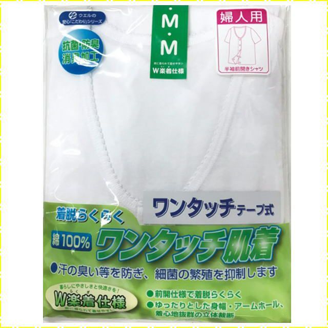 快適な日常生活をお過ごしいただけるためにお役立ていただける商品です商品の説明着替えらくらくワンタッチテープ式:楽に着られて着せやすい抗菌・防臭・消臭加工売れ筋ウエルの介護肌着ですW楽着仕様:楽に着られて着せやすい汗の臭い等を防ぎ、細菌の繁殖を抑制します。前開き仕様で着替えらくらくゆったりとした身幅・アームホール着心地抜群の立体裁断●サイズ/M・L・LL●カラー/白・ピーチ●材質/綿100%、フライス●生産国/中国洗濯時にはゴミのなどの付着の原因になりますのでテープを張り合わせてください。
