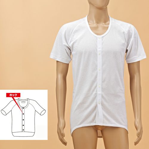 【男女共用ワンタッチ肌着 前開き5分袖 ホック式 M・L】 kbsv1600 km