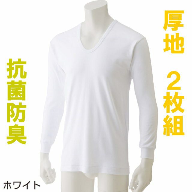 快適ベーシック肌着 秋冬に最適のU首シャツ。袖口はめくり上がりにくいソフトゴム。秋冬用肌着 お得な2枚組です。 厚地でふんわりソフトな暖かさです。 袖口ソフトゴム使用 ●品名/厚地長袖U首シャツ(2枚組)●色/ホワイト●サイズ/M・L・LL●材質/綿100%●追加説明/●生産国/ベトナム製●仕様/洗濯機OK 抗菌防臭加工 秋冬用●説明/まくり上がりにくい袖にソフトゴム使用秋冬に重宝するお買い得な厚手の肌着がさらにお手頃価格に。