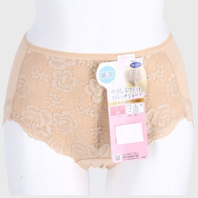 快適な日常生活をお過ごしいただけるためにお役立ていただける商品です綿混素材のショーツですストレッチでやさしくフィットしますエレガントなレースを使用しています●品名/婦人ベア天竺スタンダードショーツ●色/ピンク、ベージュ、グレー、ネイビー●サイズ/M、L、LL●材質/綿、ポリウレタン●生産国/中国製●仕様・説明/レディスショーツのびのびフィット●説明/綿混素材のショーツですストレッチでやさしくフィットしますエレガントなレースを使用しています