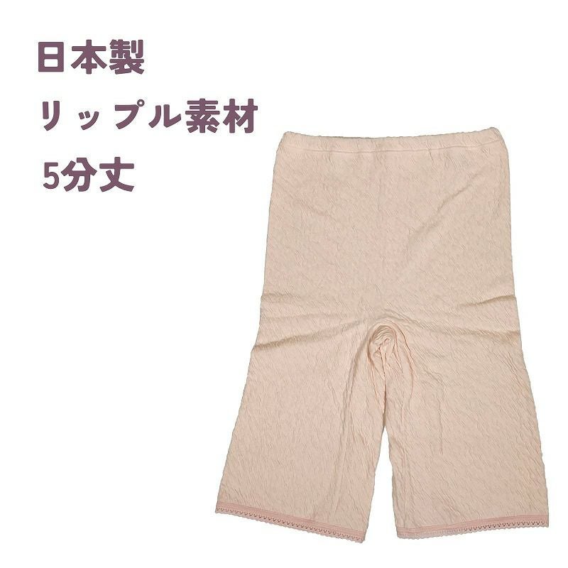 【婦人日本製リップル5分丈ボトムス(2枚組) M・L・LL】im945876z 日本製 ウエストゴム交換可能 ゆったり深履き のびのび
