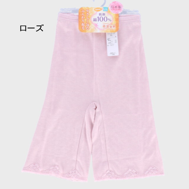 快適な日常生活をお過ごしいただけるためにお役立ていただける商品ですやさしく包むふんわりキルト柄起毛あたたかな吸湿発熱加工肌側は肌にやさしい綿100%●品名/婦人吸湿発熱裏綿100%5分丈ボトム●色/ローズ、モカ●サイズ/M、L、LL、3L●素材/表:綿47%、アクリル32%、レーヨン21% 裏:綿100%●生産国/日本製●仕様/やさしく包むふんわりキルト柄起毛あたたかな吸湿発熱加工●説明/肌側は肌にやさしい綿100%