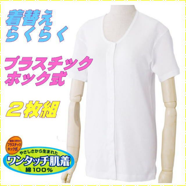 ホック式肌着 らくらく着脱 婦人前開き三分袖シャツ 抗菌防臭 消臭加工綿100%