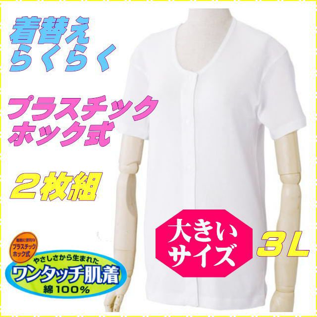 ホック式肌着 らくらく着脱 婦人前開き三分袖シャツ 抗菌防臭 消臭加工綿100%