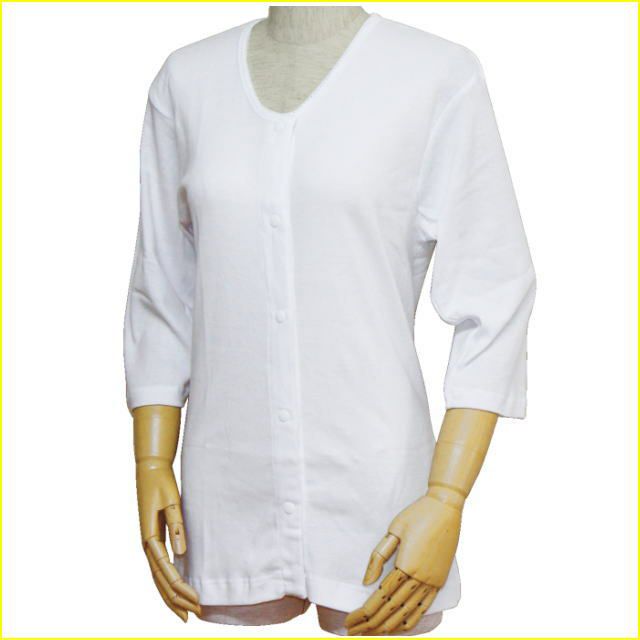 【婦人用前開き7分袖シャツ(プラスチックホック式)M・L】kmu0396w ウエル 前開き