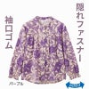 快適な日常生活をお過ごしいただけるためにお役立ていただける商品です着やすさとやさしい工夫のアイテムです【あなたにやさしいお洋服】着やすさとやさしい工夫がうれしい!機能性とお洒落を追求しました【隠れファスナー】外からはボタンに見えて、ファスナーが隠れた仕様。全開ファスナーで脱ぎ着が簡単!目をひく大きめ花柄が華やかさを演出。ゆったりした身幅で、脱ぎ着もしやすく、快適な着心地です。後ろ身頃を長めにしているので、背中が曲がった方でも、背中が出にくい設計です。名前記入欄付で間違い防止名前が書けるタグ付きなので、入院や施設入居時など、脱いだ後や洗濯後も他人のものと間違うことがありません。●品名/婦人隠れファスナーブラウス●色/ローズ・パープル・グレー●サイズ/M~L・S・LL●素材/ポリエステル95%・ポリウレタン5%●生産国/ベトナム製●仕様/洗濯機OK(ネット使用) 隠れファスナー 可愛くて機能的な袖口ゴム仕様。 名前記入欄付 後ろ身頃長め 身幅ゆったり のびのび Sサイズあり●説明/【あなたにやさしいお洋服】着やすさとやさしい工夫がうれしい!機能性とお洒落を追求しました【隠れファスナー】外からはボタンに見えて、ファスナーが隠れた仕様。全開ファスナーで脱ぎ着が簡単!目をひく大きめ花柄が華やかさを演出。