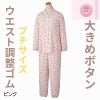 快適な日常生活をお過ごしいただけるためにお役立ていただける商品です着やすさとやさしい工夫のアイテムです小柄な方におすすめのプチサイズパジャマですつかみやすい大きめボタン着替えが簡単!ボタンの留め外しがしやすいななめボタンホール。好評ののびのび素材のプチサイズタイプ。着脱カンタン!様々な工夫脱ぎ着しやすい工夫を凝らした優しい設計です。つかみやすい大きめボタンで手の力が弱くてもボタンの留め外しがラクラクです。一般のボタンに比べてつかみやすい大きめボタンを採用。この違いがご自身での着脱も簡単にしてくれます。【ななめボタンホール】ボタンホールを斜めにすることで、手指を動かしにくい方も比較的容易にボタンの留め外しができます。【手口・足口ゴム入り】手口と足口にゴム入りなので、めくれ上がりにくい設計です。ウエスト調整ゴム付なのでゴムを入れ替えなくてもウエストサイズを自由自在に調整できます。●品名/婦人大きめボタンプチサイズのびのびストレッチパジャマ 年間用●色/ピンク・杢グレー●サイズ/M・L(P)●素材/ポリエステル75%・綿20%・ポリウレタン5%●生産国/中国製●仕様/ストレッチ素材 ※柄は若干変更になる場合もございます。 洗濯機OK(ネット使用) 洗濯機OK(ネット使用) 大きめボタン&ななめボタンホール のびのび 年間 手口・足口ゴム入り ウエスト調節ゴム付 プチサイズ●説明/好評ののびのび素材のプチサイズタイプ。