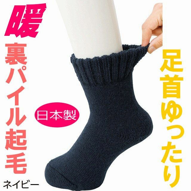 快適な日常生活をお過ごしいただけるためにお役立ていただける商品ですはきやすい足首ゆったりタイプのらくらくソックスです。内側はやわらかパイル。起毛でふんわりあったか。●品名/毛混あったか裏起毛毛布ソックス(秋冬用)●色/グレー・ネイビー・ブラック●サイズ/24-26cm●材質/アクリル ナイロン 毛 ポリエステル ポリウレタン●生産国/日本●仕様/超ゆったり 足首まわり40cm 洗濯機OK 足首ゆったり ●説明/内側はやわらかパイル起毛でふんわりあったか。