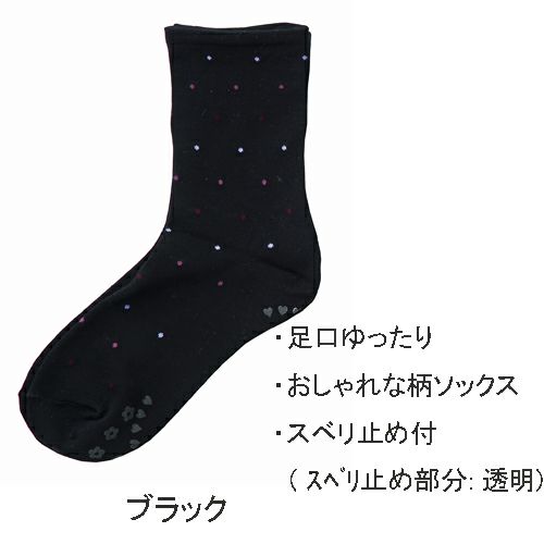 【婦人ゴムなしドット柄すべり止めソックス 日本製 22-24cm】  wzkb3336z