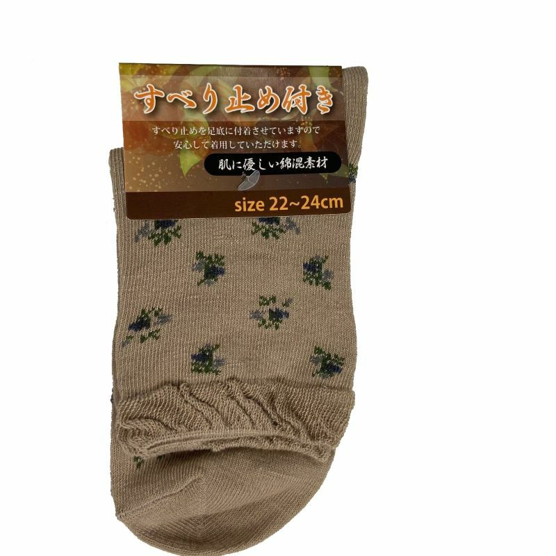 【婦人綿混名前の書ける花柄ソックス(滑り止め付き)5足組 23-25cm】 5p3005
