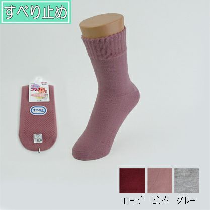 【ゴム無しすべり止めソックス(毛混)婦人用 【秋冬用】 22-24cm kb3333Hz we921026 神戸生絲 日本製