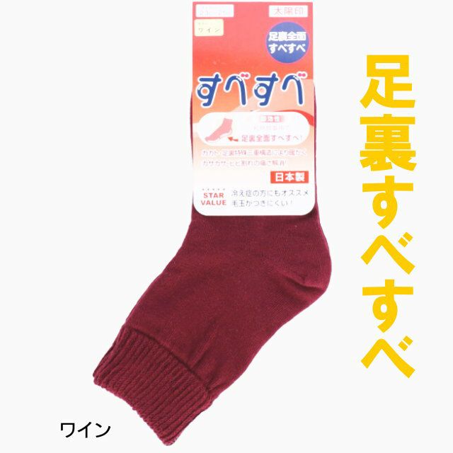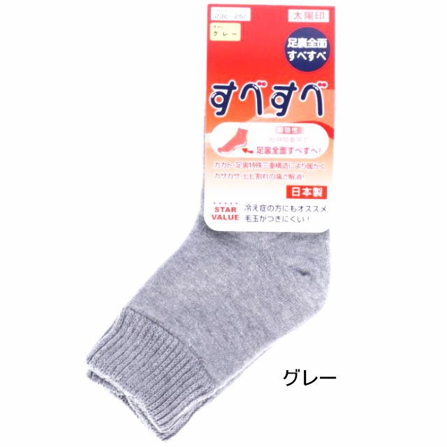 快適な日常生活をお過ごしいただけるためにお役立ていただける商品です婦人足裏全面すべすべソックスカカト三重構造により暖かくカサカサ・ひび割れの痛さ解消冷え性の方にもオススメ・毛玉がつきにくい即効性:短時間着用でカカトすべすべ足裏全面特殊フォルム付き●サイズ/23-25㎝●材質/毛混●生産国/日本