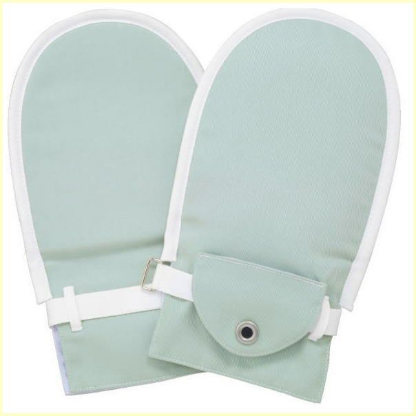 介護用品、ミトン。ミトンは、高齢者や障がい者の方々の日常生活をサポートするアイテムで、手に装着することにより使用者本人の自傷や抜管等の行為、使用者及び介護者等の生命や身体が危険にさらされることを予防します。対象者は認知障害や知的障害等があり、自傷や抜管等の行為や使用者本人及び介護者等の生命や身体が危険にさらされる恐れのある方となります。血液透析を要する等、手首の血管を圧迫することに問題のある方には使用しないでください。