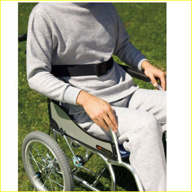 車椅子関連 ・車椅子に乗られる方のずり落ち防止ベルトです。姿勢保持・座位保持にご使用ください。 ・バックルで簡単に装着できる車いす用のシートベルト。 ※普通型の車椅子以外(リクライニング等)には使用しないで下さい。 ※看護者・介護者の目の届く範囲でご使用ください。 ※長時間の使用はおやめください。 背固定タイプ ・1本のシートベルトをバックルで固定します。 ●サイズ/幅5×長さ約150cm ●重さ/130g ●車いすの適応条件/普通型 ●生産国/日本 左右固定タイプ ・2本1組のシートベルトをバックルで固定します。 ・車椅子の背パイプに固定するので工具が必要ありません。 ●サイズ/幅5×長さ約140cm(つなぎ合わせたとき) ●重さ/130g ●車いすの適応条件/普通型 ●生産国/日本