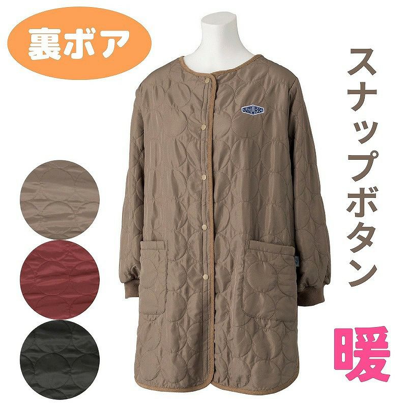 快適な日常生活をお過ごしいただけるためにお役立ていただける商品です着やすさとやさしい工夫のアイテムですワンタッチであたたかグッズサッと身に着けてポカポカ肩から腰まで幅広く温められるラインナップホックボタンでワンタッチで着脱できます。●品名/キルト裏ボアスモック●色/ベージュ・ピンク・チャコール●サイズ/M~L●素材/表地:ポリエステル100% 裏地:ポリエステル100% リブ部分:ポリエステル95%・ポリウレタン5%●生産国/中国製●仕様/手洗い ホック 秋冬用●説明/ワンタッチであたたかグッズサッと身に着けてポカポカ肩から腰まで幅広く温められるラインナップホックボタンでワンタッチで着脱できます。