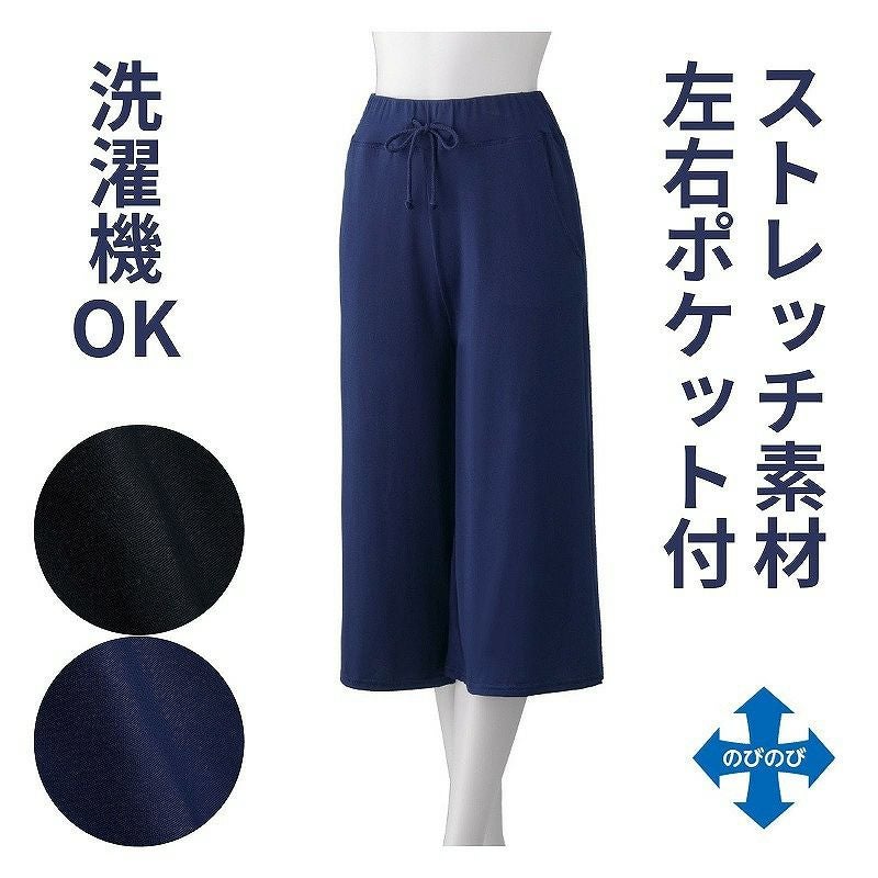快適な日常生活をお過ごしいただけるためにお役立ていただける商品です着やすさとやさしい工夫のアイテムです【のびのびストレッチルームウエア】従来のルームウエアに比べ、より高い伸縮性があり着脱が楽なだけでなく滑らかな風合いで、より快適な着心地が体感できます。お家の中で究極のリラックス!急な来訪にも安心のおしゃれデザイン!夏に最適なサラサラ素材のパンツです。涼しい素材で夏のお部屋でも快適。ストレッチ素材●品名/のびのびストレッチルームパンツ(春夏用)●色/ネイビー・ブラック●サイズ/M・L・LL●素材/ポリエステル90%・ポリウレタン10%●生産国/中国製●仕様/洗濯機OK(ネット使用) のびのび(縦横) 左右ポケット付き●説明/夏に最適なサラサラ素材のパンツです。 ストレッチ素材