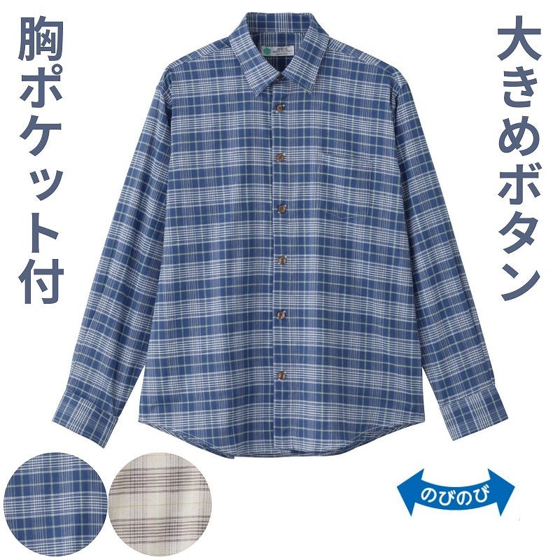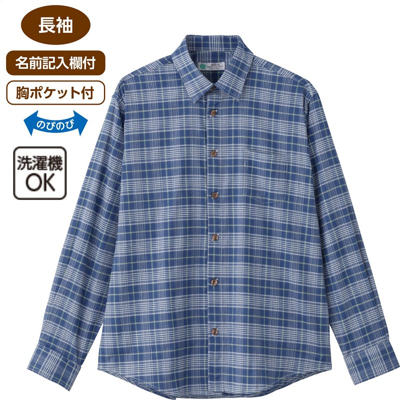 サラッと涼しいしじら素材で快適に着られるシャツ。大きめボタンと斜めボタンホールで留め外しがしやすく便利です。胸ポケット付き、名前記入欄付き♪洗濯機OKで毎日活躍する一枚です。