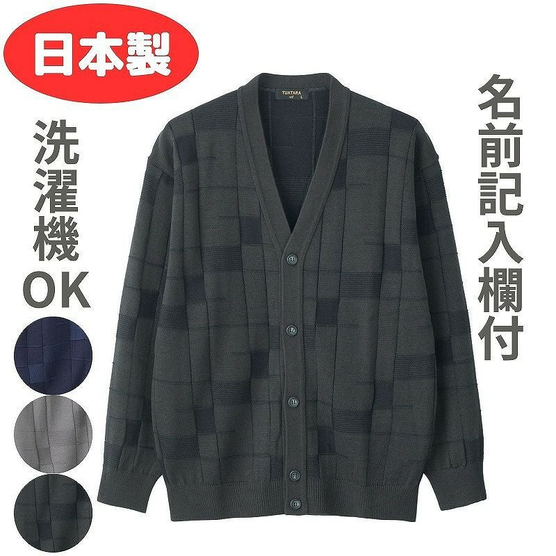 快適な日常生活をお過ごしいただけるためにお役立ていただける商品です着やすさとやさしい工夫のアイテムです【日本製ニット】さっと羽織れて着回しのきくあったか素材です。ふんわり感とぬくもりのある上質素材で、肌触りも快適なニットです。ジャカード編みにより、しっかりとした厚みと立体感を生み出し、上品さで高級感のある見た目に仕上げています。二重臼特有の変形や柄編みによって、高級感や存在感のあるデザイン。名前記入欄付で間違い防止名前が書けるタグ付きなので、入院や施設入居時など、脱いだ後や洗濯後も他人のものと間違うことがありません。●品名/国産ニットカーディガン●色/チャコール・ネイビー・グレー●サイズ/M・L・LL●素材/アクリル55%・ポリエステル30%・レーヨン15%●生産国/日本製●仕様/洗濯機OK(ネット使用) 名前記入欄付●説明/【日本製ニット】さっと羽織れて着回しのきくあったか素材です。ふんわり感とぬくもりのある上質素材で、肌触りも快適なニットです。ジャカード編みにより、しっかりとした厚みと立体感を生み出し、上品さで高級感のある見た目に仕上げています。二重臼特有の変形や柄編みによって、高級感や存在感のあるデザイン。