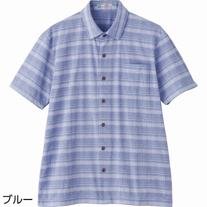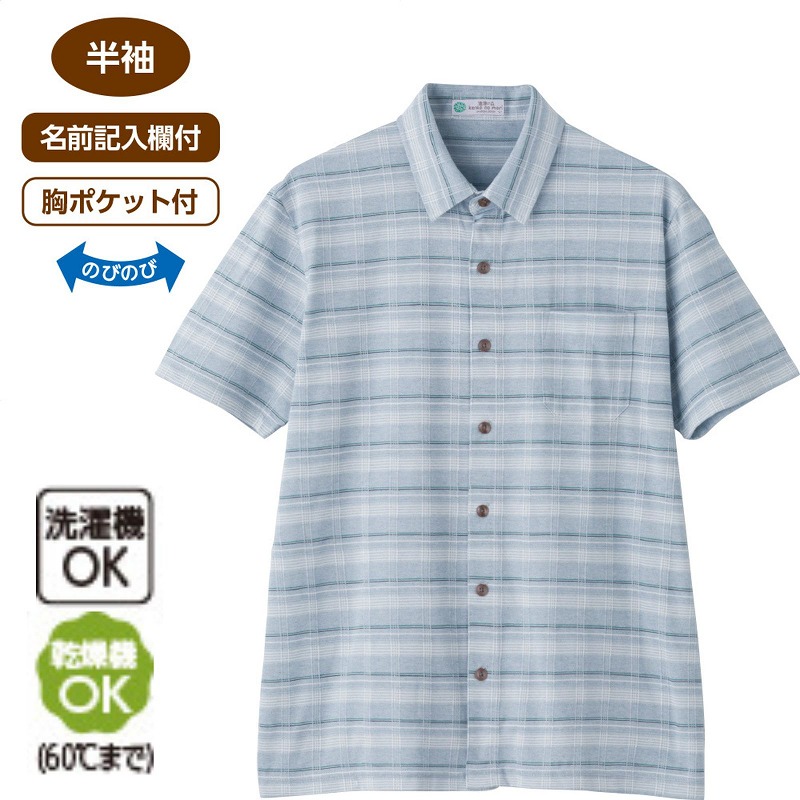 快適な日常生活をお過ごしいただけるためにお役立ていただける商品です着やすさとやさしい工夫のアイテムです麻混素材の軽やかな風合いで涼しく着られる半袖ニットシャツ。大きめボタンと斜めボタンホールで着脱しやすく便利です。胸ポケット付き、名前記入欄付き♪洗濯機OKで毎日使いやすい爽やかな一枚です。着脱カンタン!様々な工夫つかみやすい大きめボタンと斜めに開いたボタンホールにより片手でもボタンの留め外しが負担なくできます。脱ぎ着しやすい工夫を凝らした優しい設計です。名前記入欄付で間違い防止名前が書けるタグ付きなので、入院や施設入居時など、脱いだ後や洗濯後も他人のものと間違うことがありません。●品名/麻混斜め釦ホール半袖ニットシャツ●色/グレー・サックス・ブルー●サイズ/M・L●素材/ポリエステル65%・綿25%・麻10%●生産国/中国製●仕様/洗濯機OK(ネット使用) 名前記入欄付 大きめボタン&斜めボタンホール 胸ポケット付 のびのび 半袖 麻混素材でさわかな風合い。