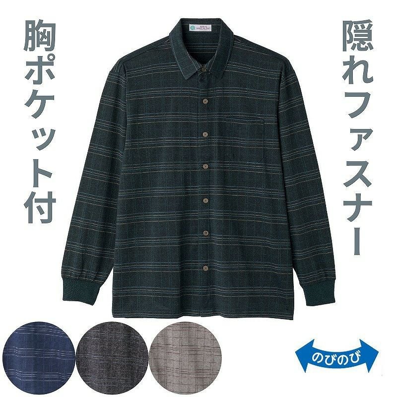 快適な日常生活をお過ごしいただけるためにお役立ていただける商品です着やすさとやさしい工夫のアイテムです【あなたにやさしいお洋服】ちょっとした困りごとを機能で解決!やさしい機能がいっぱいの一枚でおしゃれが決まるニットシャツです【隠れファスナー】ボタンの留め外しがしづらくなっている方におすすめ!見た目は普通のボタンですが、ファスナー仕様になっているから脱ぎ着も簡単です肌触りの良い綿混素材。【隠れファスナー】外からはボタンに見えて、ファスナーが隠れた仕様全開ファスナーで脱ぎ着が簡単らくらく!名前記入欄付で間違い防止名前が書けるタグ付きなので、入院や施設入居時など、脱いだ後や洗濯後も他人のものと間違うことがありません。●品名/紳士綿混隠れファスナーニットシャツ●色/グレー・ネイビー・チャコール・ターコイズ●サイズ/M・L●素材/ポリエステル75%・綿25%●生産国/中国製●仕様/洗濯機OK のびのび 名前記入欄付 隠れファスナー 胸ポケット付●説明/【あなたにやさしいお洋服】ちょっとした困りごとを機能で解決!やさしい機能がいっぱいの一枚でおしゃれが決まるニットシャツです【隠れファスナー】ボタンの留め外しがしづらくなっている方におすすめ!見た目は普通のボタンですが、ファスナー仕様になっているから脱ぎ着も簡単です肌触りの良い綿混素材。