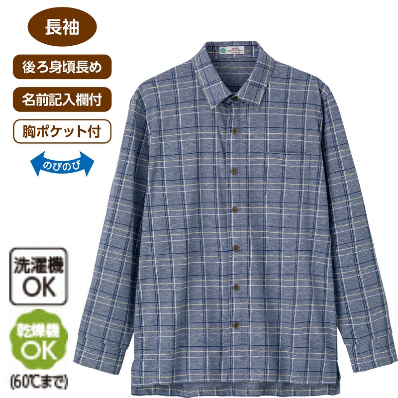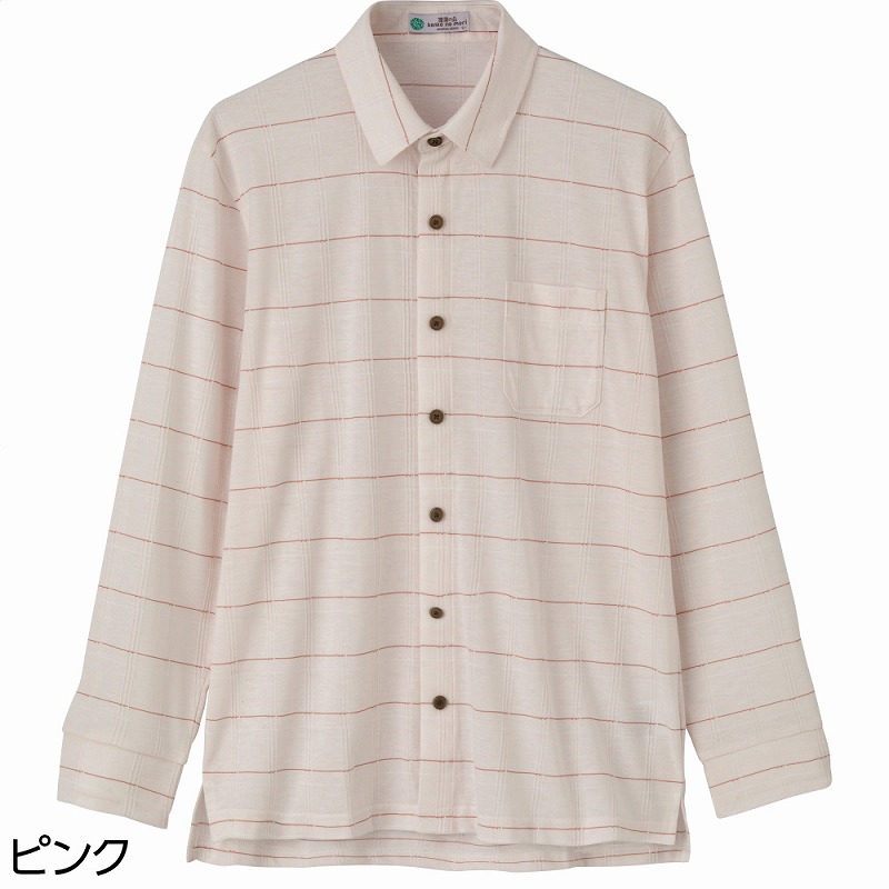 快適な日常生活をお過ごしいただけるためにお役立ていただける商品です着やすさとやさしい工夫のアイテムです冷房対策にも最適な夏素材の長袖ニットシャツ。見た目は普通のボタン、内側は隠れファスナー仕様で脱ぎ着が簡単です。後ろ身頃長めで安心の着心地、胸ポケット付き、名前記入欄付き♪洗濯機・乾燥機OK(60℃まで)でお手入れもラクです。【隠れファスナー】外からはボタンに見えて、ファスナーが隠れた仕様全開ファスナーで脱ぎ着が簡単らくらく!後ろ身頃を長めにしているので、背中が曲がった方でも、背中が出にくい設計です。名前記入欄付で間違い防止名前が書けるタグ付きなので、入院や施設入居時など、脱いだ後や洗濯後も他人のものと間違うことがありません。乾燥機が使えるからお手入れ簡単!【乾燥機対応アウター】お手入れラクラクでうれしい!お洗濯の手間が減ります。乾燥機は低温でご使用ください。●品名/麻混隠れファスナーニットシャツ●色/グレー・ブルー・ターコイズ・ピンク●サイズ/M・L・LL●素材/ポリエステル76%・綿17%・麻7%●生産国/中国製●仕様/洗濯機OK(ネット使用) 名前記入欄付 隠れファスナー 胸ポケット付 後ろ身頃長め のびのび 乾燥機OK(60℃まで) 長袖 冷房対策にも最適な夏素材の長袖シャツ。