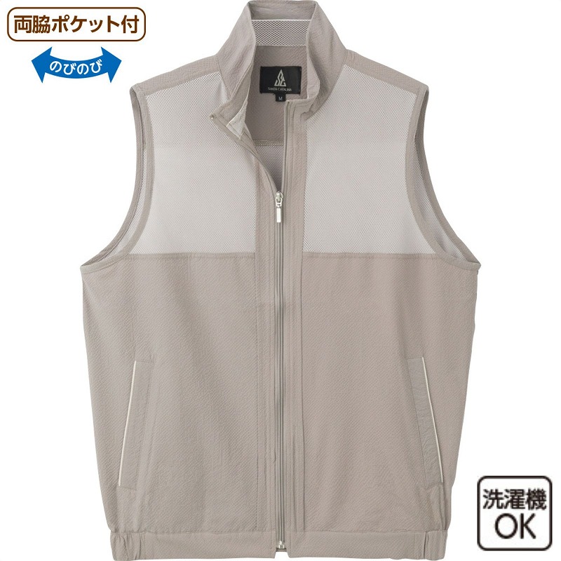快適な日常生活をお過ごしいただけるためにお役立ていただける商品です着やすさとやさしい工夫のアイテムですさらさら触感でサッと羽織れる軽量タイプのシアサッカーフルジップベスト。切り替えメッシュで通気性がよく、脇裾ゴム入りでゆったり快適な着心地です♪よこ伸縮で動きやすく、両脇ポケット付きで実用的。洗濯機OKで毎日使いやすいフルジップベストです。●品名/シアサッカーフルジップベスト●色/グレージュ・ネイビー・ブルーグレー●サイズ/M・L・LL●素材/ポリエステル97%・ポリウレタン3%●生産国/ミャンマー製●仕様/洗濯機OK(ネット使用) 両脇ポケット付 切替メッシュ 脇裾ゴム のびのび さらさら触感でサッと羽織れる軽量ベスト。