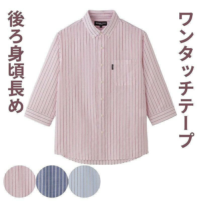 快適な日常生活をお過ごしいただけるためにお役立ていただける商品です着やすさとやさしい工夫のアイテムです一枚でおしゃれが決まるカジュアルシャツですおしゃれに着こなせる柄が素敵です。【ワンタッチテープ】見た目は普通のボタンですが、裏がワンタッチテープで、開け閉めが簡単です。さらっとした肌ざわりで見た目も涼しげ。着脱カンタン!様々な工夫ワンタッチテープ仕様でボタンが留めにくい方も脱ぎ着しやすい工夫を凝らした優しい設計です。手や指の負担も軽減します。着替えや検温時にはさっと開閉できます。飾りボタンで見た目は普通の洋服と変わりませんマジックテープ商品に関するご注意洗濯時にはゴミのなどの付着の原因になりますのでテープを張り合わせてください。後ろ身頃を長めにしているので、背中が曲がった方でも、背中が出にくい設計です。名前記入欄付で間違い防止名前が書けるタグ付きなので、入院や施設入居時など、脱いだ後や洗濯後も他人のものと間違うことがありません。●品名/サッカーワンタッチテープ7分袖シャツ●色/ネイビー・サックス・ピンク●サイズ/M・L・LL・3L●素材/ポリエステル80%・綿20%●生産国/中国製●仕様/洗濯機OK(ネット使用) 名前記入欄付 ワンタッチテープ 胸ポケット付 後ろ身頃長め 7分袖 3Lサイズあり ●説明/一枚でおしゃれが決まるカジュアルシャツですおしゃれに着こなせる柄が素敵です。【ワンタッチテープ】見た目は普通のボタンですが、裏がワンタッチテープで、開け閉めが簡単です。さらっとした肌ざわりで見た目も涼しげ。