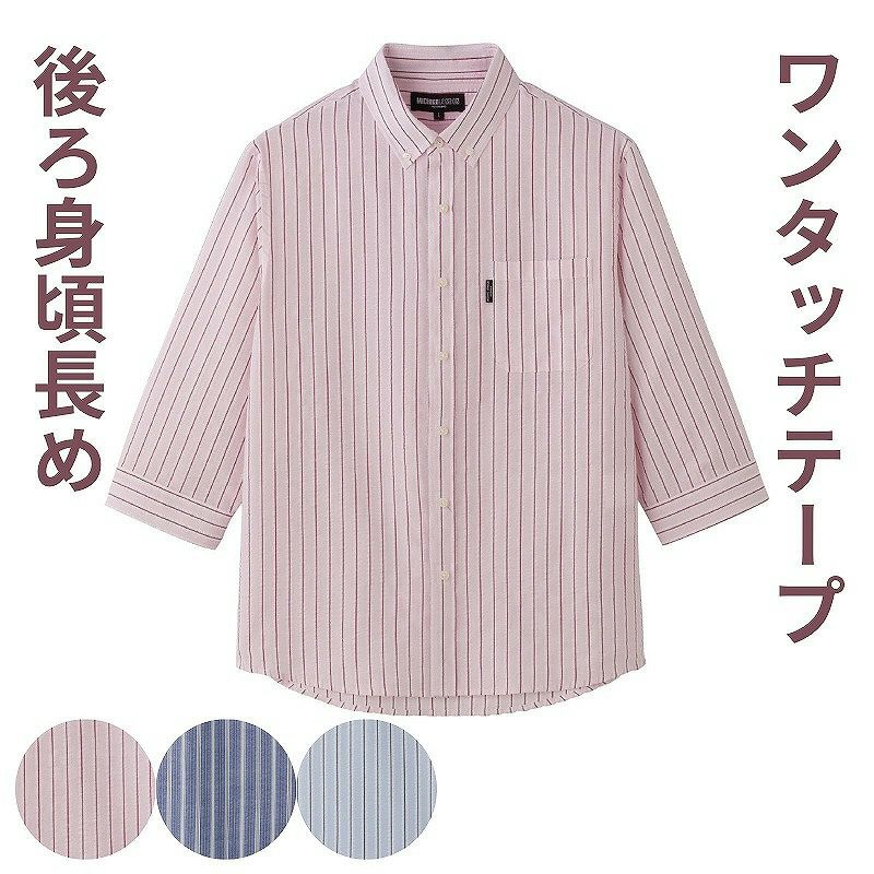 マジックテープ商品に関するご注意洗濯時にはゴミのなどの付着の原因になりますのでテープを張り合わせてください。後ろ身頃を長めにしているので、背中が曲がった方でも、背中が出にくい設計です。名前記入欄付で間違い防止名前が書けるタグ付きなので、入院や施設入居時など、脱いだ後や洗濯後も他人のものと間違うことがありません。●品名/サッカーワンタッチテープ7分袖シャツ●色/ネイビー・サックス・ピンク●サイズ/M・L・LL・3L●素材/ポリエステル80%・綿20%●生産国/中国製●仕様/洗濯機OK(ネット使用) 名前記入欄付 ワンタッチテープ 胸ポケット付 後ろ身頃長め 7分袖 3Lサイズあり ●説明/一枚でおしゃれが決まるカジュアルシャツですおしゃれに着こなせる柄が素敵です。【ワンタッチテープ】見た目は普通のボタンですが、裏がワンタッチテープで、開け閉めが簡単です。さらっとした肌ざわりで見た目も涼しげ。