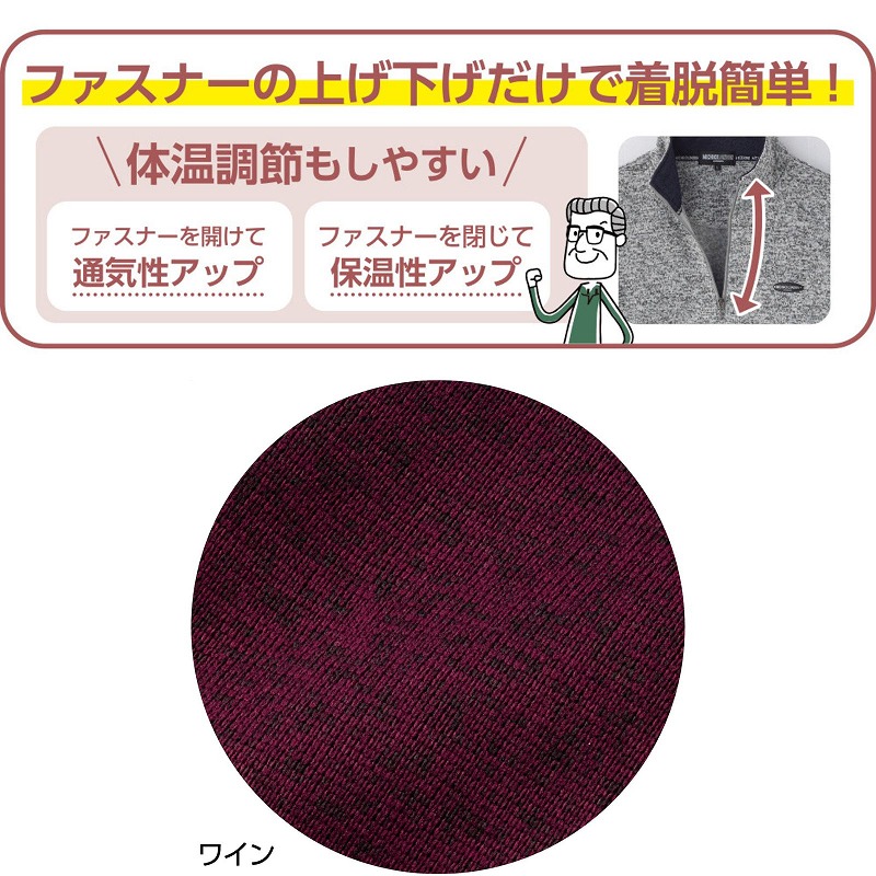 快適な日常生活をお過ごしいただけるためにお役立ていただける商品です着やすさとやさしい工夫のアイテムです【ハーフジップ】見た目もオシャレで脱ぎ着しやすいハーフジップタイプ!快適なな着心地のトレーナーです。軽くて暖かいニットフリース素材。●品名/ニットフリースハーフジップトレーナー●色/グレー・ワイン・ネイビー●サイズ/M・L・LL●素材/ポリエステル100%●生産国/中国製●仕様/洗濯機OK(ネット使用) のびのび フリース 深めの前開き設計●説明/【ハーフジップ】見た目もオシャレで脱ぎ着しやすいハーフジップタイプ!快適なな着心地のトレーナーです。軽くて暖かいニットフリース素材。