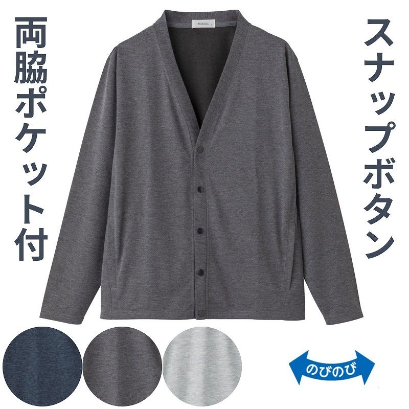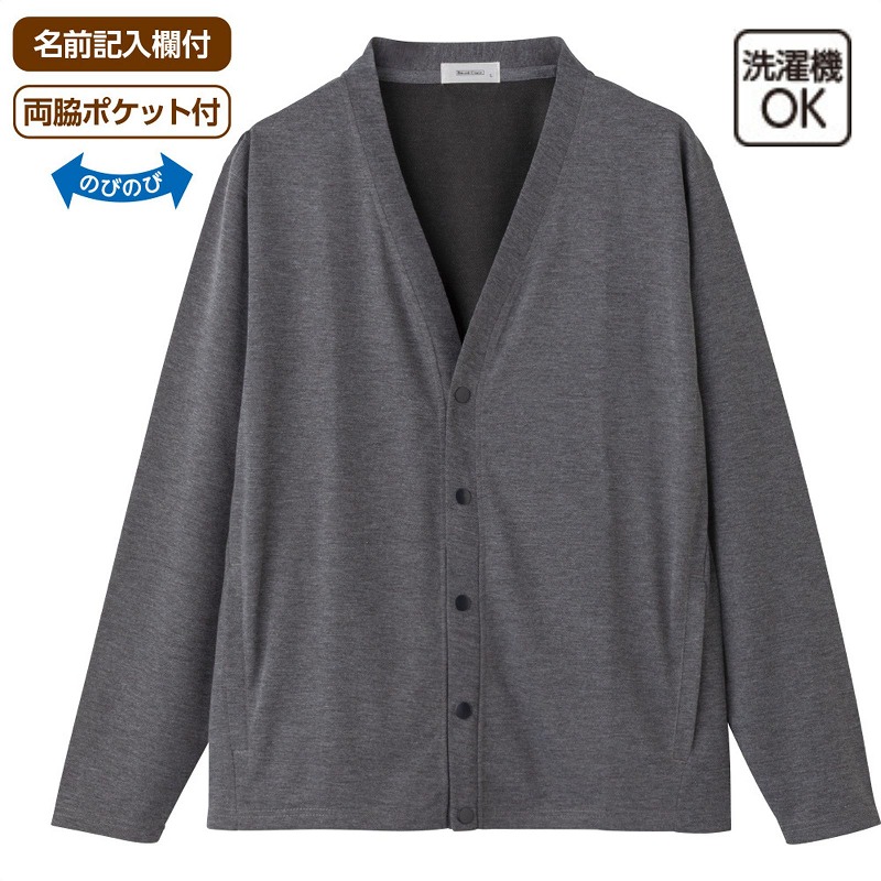 快適な日常生活をお過ごしいただけるためにお役立ていただける商品です着やすさとやさしい工夫のアイテムです表はやわらかく裏はサラッとした肌ざわりの天竺裏ハニカムスナップ釦カーディガン。よこストレッチで動きやすく、スナップボタンで開け閉めも簡単です♪両脇ポケット付きで便利、名前記入欄付きで安心。洗濯機OKでお手入れしやすい前開きカーディガンです。着脱カンタン!様々な工夫スナップボタン仕様でボタンが留めにくい方も脱ぎ着しやすい工夫を凝らした優しい設計です。着替えや検温時にはさっと開閉できます。飾りボタンで見た目は普通の洋服と変わりません名前記入欄付で間違い防止名前が書けるタグ付きなので、入院や施設入居時など、脱いだ後や洗濯後も他人のものと間違うことがありません。●品名/天竺裏ハニカムスナップ釦カーディガン●色/チャコール・ネイビー・グレー●サイズ/M・L・LL●素材/ポリエステル100%●生産国/中国製●仕様/洗濯機OK(ネット使用) 名前記入欄付 スナップボタン 両脇ポケット付 のびのび 表はやわらかく、裏はサラッとした肌ざわり。