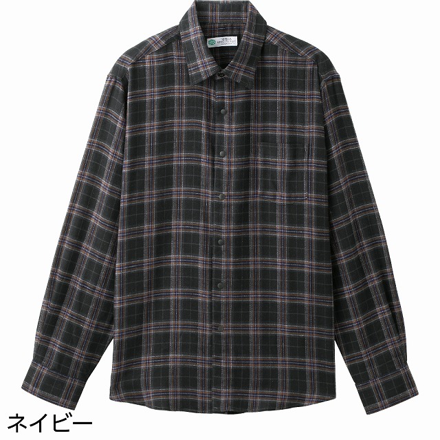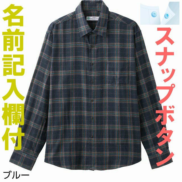 快適な日常生活をお過ごしいただけるためにお役立ていただける商品です着やすさとやさしい工夫がいっぱいのアイテムです一枚でおしゃれが決まるカジュアルシャツです着やすさとやさしい工夫のアイテムです。起毛素材で秋冬のおしゃれな装いにぴったり。【スナップボタン】指に力を入れなくてもボタンの留め外しが簡単にできます。袖口も斜めスナップボタン仕様です。着脱カンタン!様々な工夫スナップボタン仕様でボタンが留めにくい方も脱ぎ着しやすい工夫を凝らした優しい設計です。飾りボタンで見た目は普通の洋服と変わりません名前記入欄付で間違い防止名前が書けるタグ付きなので、入院や施設入居時など、脱いだ後や洗濯後も他人のものと間違うことがありません。●品名/スナップ釦起毛シャツ●色/ブルー・ネイビー●サイズ/M・L・LL●素材/ポリエステル65%・綿35%●生産国/中国製●仕様/洗濯機OK(ネット使用) 名前記入欄付 スナップボタン 胸ポケット付 のびのび●説明/一枚でおしゃれが決まるカジュアルシャツです着やすさとやさしい工夫のアイテムです。起毛素材で秋冬のおしゃれな装いにぴったり。