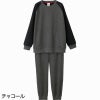 ●仕様/洗濯機OK 上:両脇ポケット付、下:両脇右後ポケット付 動きやすいラグラン袖 のびのび ウエスト総ゴム/裾リブ ※ウエストゴム取替え仕様ではありません