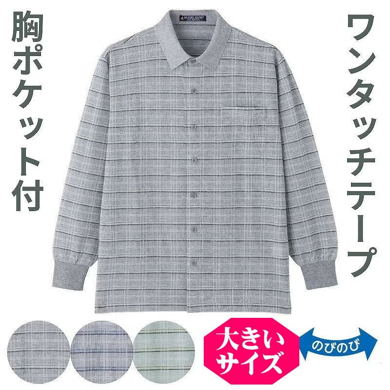 快適な日常生活をお過ごしいただけるためにお役立ていただける商品です着やすさとやさしい工夫のアイテムです動きやすくて着心地の良いニットシャツです前開きなので着替えがラクラク!カジュアルなお洒落を楽しめる定番アイテムのニットシャツです。麻混素材でさわかな風合い。着脱カンタン!様々な工夫ワンタッチテープ仕様でボタンが留めにくい方も脱ぎ着しやすい工夫を凝らした優しい設計です。手や指の負担も軽減します。着替えや検温時にはさっと開閉できます。飾りボタンで見た目は普通の洋服と変わりませんマジックテープ商品に関するご注意洗濯時にはゴミのなどの付着の原因になりますのでテープを張り合わせてください。名前記入欄付で間違い防止名前が書けるタグ付きなので、入院や施設入居時など、脱いだ後や洗濯後も他人のものと間違うことがありません。●品名/麻混ワンタッチテープニットシャツ●色/グレー・ブルー・ワサビ●サイズ/M・L●素材/ポリエステル77%・綿22%・麻1%●生産国/中国製●仕様/洗濯機OK(ネット使用) 名前記入欄付 ワンタッチテープ 胸ポケット付 のびのび 長袖 ●説明/動きやすくて着心地の良いニットシャツです前開きなので着替えがラクラク!カジュアルなお洒落を楽しめる定番アイテムのニットシャツです。麻混素材でさわかな風合い。