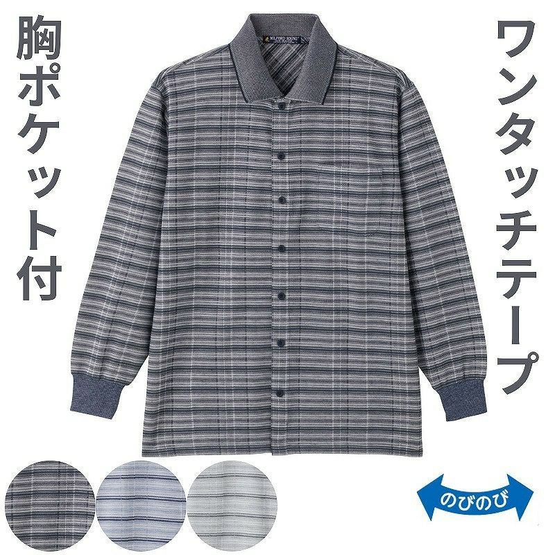 マジックテープ商品に関するご注意洗濯時にはゴミのなどの付着の原因になりますのでテープを張り合わせてください。名前記入欄付で間違い防止名前が書けるタグ付きなので、入院や施設入居時など、脱いだ後や洗濯後も他人のものと間違うことがありません。●品名/綿混ワンタッチテープポロシャツ●色/グレー・ブルー・ネイビー●サイズ/M・L・LL●素材/ポリエステル85%・綿15%●生産国/中国製●仕様/洗濯機OK(ネット使用) 名前記入欄付 ワンタッチテープ 胸ポケット付 のびのび 長袖 ●説明/動きやすくて着心地の良いポロシャツです前開きなので着替えがラクラク!カジュアルなお洒落を楽しめる定番アイテムのポロシャツです。冷房対策にも最適な夏素材の長袖ポロシャツ。