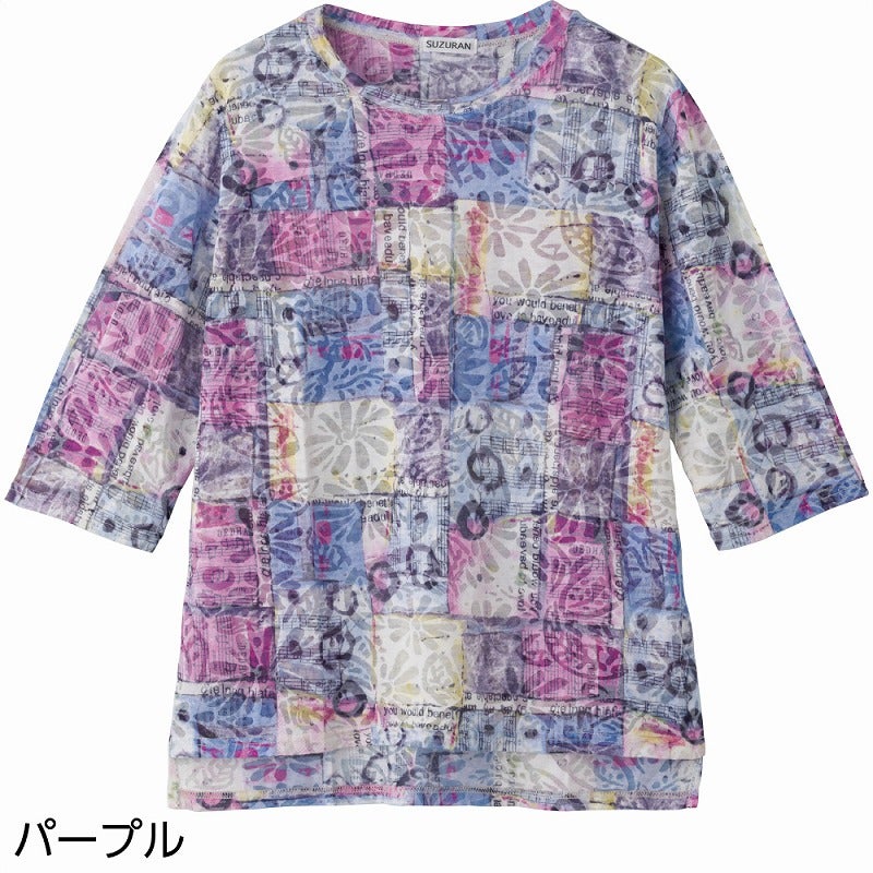 【婦人7分袖後ろ長め綿混TシャツM~L】 A24-822236