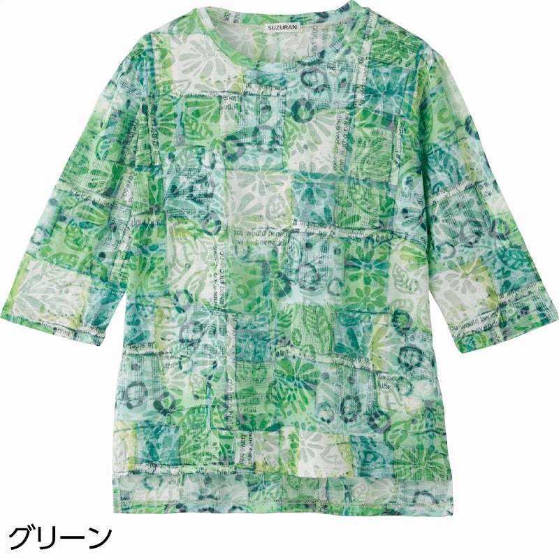【婦人6分袖後ろ長めオパール柄TシャツM~L】 A24-822234