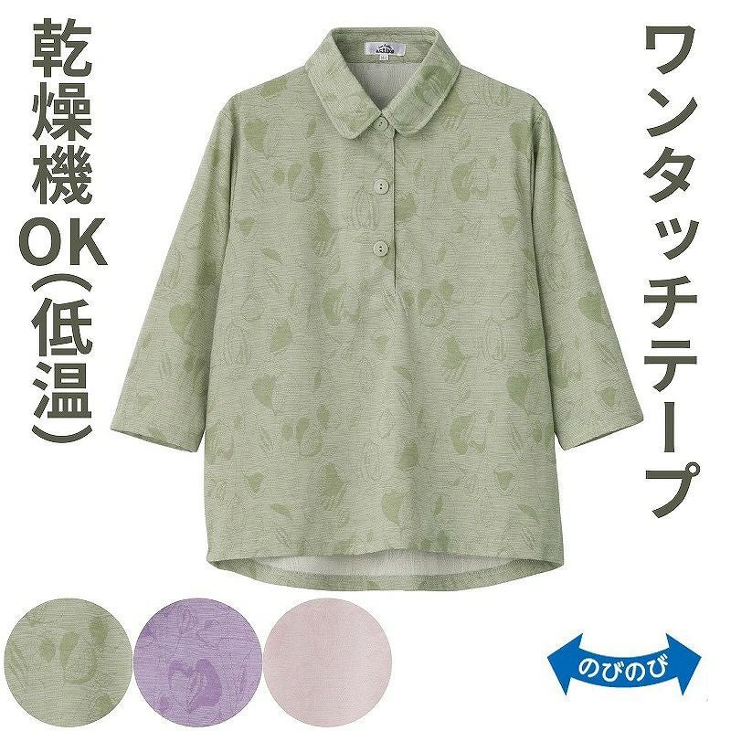 快適な日常生活をお過ごしいただけるためにお役立ていただける商品です着やすさとやさしい工夫のアイテムです【デイリーカジュアルスタイル】普段着にぴったりなベーシックポロシャツ。ゆったりとした着心地施設内など、室内着としての必需品です。普段着として使いやすい、ゆったりらくらくポロシャツ シンプルなデザインはコーディネートを選ばないので、使い勝手も良く毎日の活躍間違いなし。軽くて柔らかい素材感。春夏の普段着にぴったり!乾燥機が使えるからお手入れ簡単!【乾燥機対応アウター】お手入れラクラクでうれしい!お洗濯の手間が減ります。乾燥機は低温でご使用ください。着脱カンタン!様々な工夫ワンタッチテープ仕様でボタンが留めにくい方も脱ぎ着しやすい工夫を凝らした優しい設計です。手や指の負担も軽減します。着替えや検温時にはさっと開閉できます。飾りボタンで見た目は普通の洋服と変わりませんマジックテープ商品に関するご注意洗濯時にはゴミのなどの付着の原因になりますのでテープを張り合わせてください。ゆったりした身幅で、脱ぎ着もしやすく、快適な着心地です。名前記入欄付で間違い防止名前が書けるタグ付きなので、入院や施設入居時など、脱いだ後や洗濯後も他人のものと間違うことがありません。後ろ身頃を長めにしているので、背中が曲がった方でも、背中が出にくい設計です。●品名/7分袖ワンタッチテープポロシャツ●色/パープル・ピンク・グリーン●サイズ/M~L・LL●素材/ポリエステル80%・レーヨン20%●生産国/中国製●仕様/洗濯機OK(ネット使用) 名前記入欄付 ワンタッチテープ 後ろ身頃長め 身幅ゆったり のびのび 乾燥機OK(60℃まで) 7分袖 長めの20cm半開 ●説明/【デイリーカジュアルスタイル】普段着にぴったりなベーシックポロシャツ。ゆったりとした着心地施設内など、室内着としての必需品です。普段着として使いやすい、ゆったりらくらくポロシャツ シンプルなデザインはコーディネートを選ばないので、使い勝手も良く毎日の活躍間違いなし。軽くて柔らかい素材感。春夏の普段着にぴったり!乾燥機が使えるからお手入れ簡単!【乾燥機対応アウター】お手入れラクラクでうれしい!お洗濯の手間が減ります。乾燥機は低温でご使用ください。
