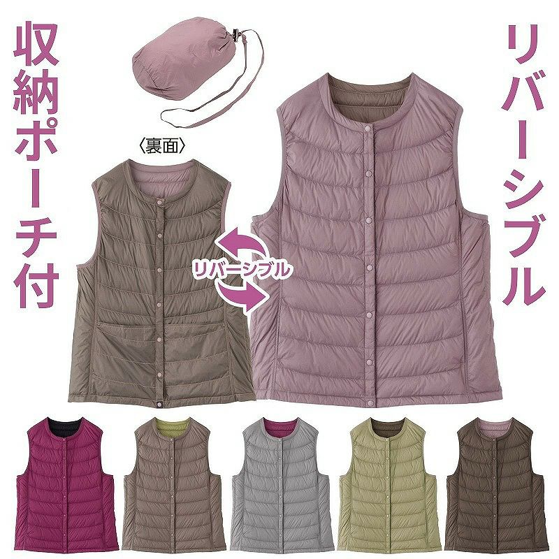 快適な日常生活をお過ごしいただけるためにお役立ていただける商品です着やすさとやさしい工夫のアイテムです【軽くてあたたかダウンアウターコレクション】暖X柔X軽Xふわっ暖かくてやわらかくて軽い!ふわふわの着心地インナーダウンとしても活躍します。おうちでもお出かけでも気軽に羽織れる軽量ダウン持ち運びにも便利です【リバーシブル】リバーシブルだからコーディネートに合わせてカラーを選べます。!ゆったりした身幅で、脱ぎ着もしやすく、快適な着心地です。名前記入欄付で間違い防止名前が書けるタグ付きなので、入院や施設入居時など、脱いだ後や洗濯後も他人のものと間違うことがありません。●品名/軽量リバーシブルダウンベスト●色/グレー・カラシ・ピンク・チェリー・モカ・カーキ●サイズ/M~L・LL●素材/ナイロン100%(ダウン80%・フェザー20%)●生産国/中国製●仕様/ドライ 名前記入欄付 身幅ゆったり 両脇ポケット付 収納ポーチ付き リバーシブル●説明/【軽くてあたたかダウンアウターコレクション】暖X柔X軽Xふわっ暖かくてやわらかくて軽い!ふわふわの着心地インナーダウンとしても活躍します。おうちでもお出かけでも気軽に羽織れる軽量ダウン持ち運びにも便利です【リバーシブル】リバーシブルだからコーディネートに合わせてカラーを選べます。!