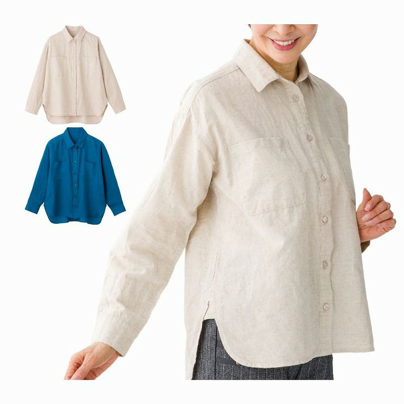 快適な日常生活をお過ごしいただけるためにお役立ていただける商品です着やすさとやさしい工夫のアイテムです今どきのゆったりコーデで大人カジュアルにカジュアルな中にもきちんと感のある装い清涼感のある綿麻素材。●品名/婦人胸ポケット付シャツブラウス●色/ベージュ・ブルー●サイズ/M・L・LL●素材/綿65%・麻35%●生産国/中国製●仕様/洗濯機OK●説明/今どきのゆったりコーデで大人カジュアルにカジュアルな中にもきちんと感のある装い清涼感のある綿麻素材。