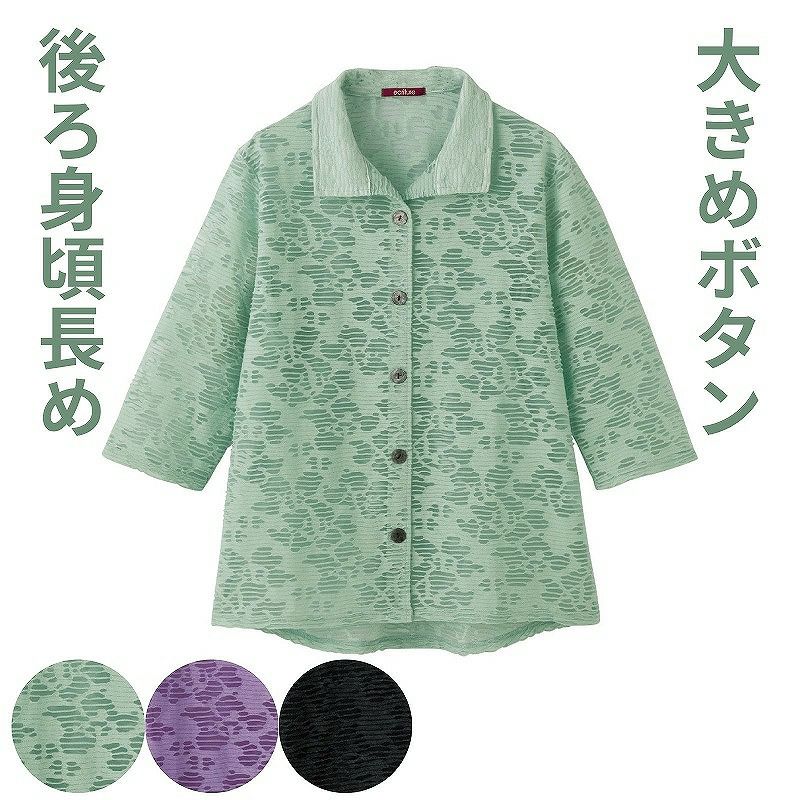 【婦人7分袖斜め釦ホールシャツカーディガンM・L】 A18-821800z