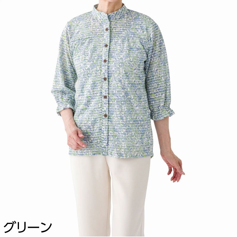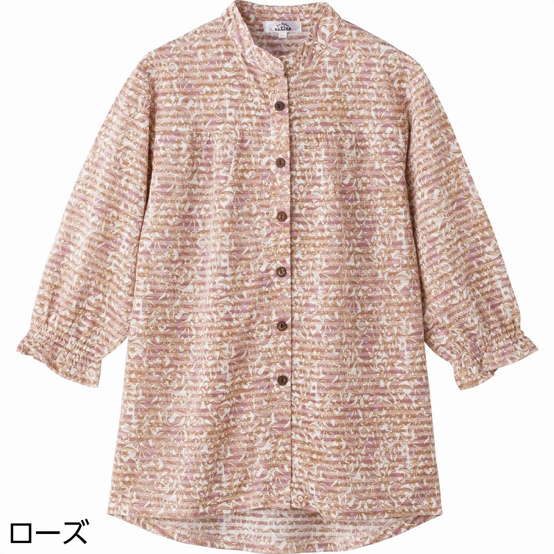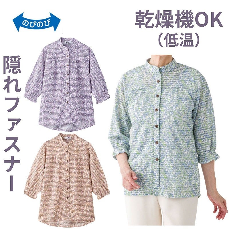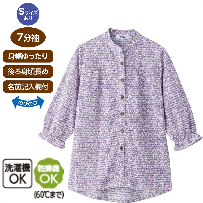 快適な日常生活をお過ごしいただけるためにお役立ていただける商品です着やすさとやさしい工夫のアイテムですやわらかく涼しげな生地で、ゆったり心地よく着られるブラウスです♪外からはボタンに見える隠れファスナー仕様で、見た目すっきり上品なのに着脱はスムーズ。身幅ゆったりのラクな着心地に、後ろ身頃が少し長めで背中まわりも安心です。七分袖で軽やかに着られ、名前記入欄つきで便利に使えます。【隠れファスナー】外からはボタンに見えて、ファスナーが隠れた仕様全開ファスナーで脱ぎ着が簡単らくらく!ゆったりした身幅で、脱ぎ着もしやすく、快適な着心地です。後ろ身頃を長めにしているので、背中が曲がった方でも、背中が出にくい設計です。名前記入欄付で間違い防止名前が書けるタグ付きなので、入院や施設入居時など、脱いだ後や洗濯後も他人のものと間違うことがありません。●品名/7分袖隠れファスナーブラウス●色/ローズ・グリーン・パープル●サイズ/M~L・S・LL●素材/ポリエステル80%・綿20%●生産国/中国製●仕様/洗濯機OK(ネット使用) 名前記入欄付 隠れファスナー 袖口ゴム 後ろ身頃長め 身幅ゆったり のびのび 乾燥機OK(60℃まで) 7分袖やわらかく涼し気な生地で、ゆったり着られます!