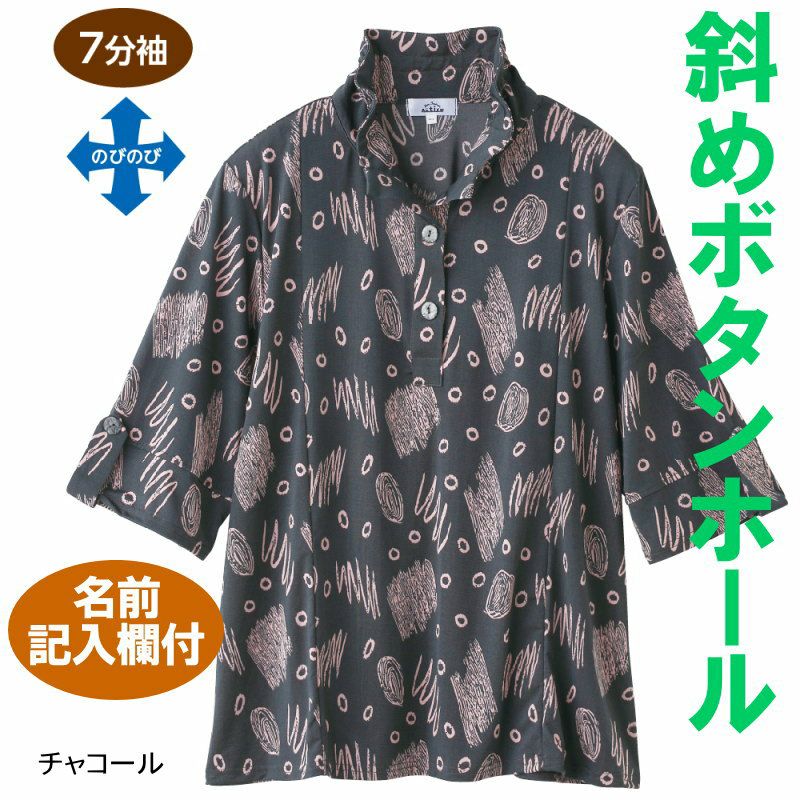 【婦人7分袖斜め釦ホールチュニック M-L】 A18-820633