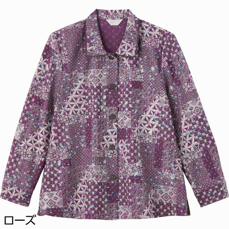 【婦人7分袖花柄刺繍前開きブラウス M・L・LL】 A24-822238