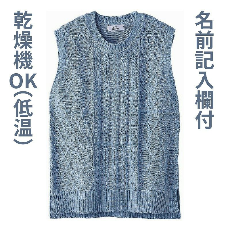 快適な日常生活をお過ごしいただけるためにお役立ていただける商品です着やすさとやさしい工夫のアイテムです乾燥機が使えるからお手入れ簡単!【乾燥機対応アウター】お手入れラクラクでうれしい!お洗濯の手間が減ります。乾燥機は低温でご使用ください。爽やかな色合いの綿混ニット素材。●品名/ニット綿混かぶりベスト●色/ラベンダー・サーモン・ブルー●サイズ/M-L●素材/アクリル55%・綿45%ジャカード●生産国/中国製●仕様/洗濯機OK 名前記入欄付 後ろ身頃長め 乾燥機OK(低温)●説明/乾燥機が使えるからお手入れ簡単!【乾燥機対応アウター】お手入れラクラクでうれしい!お洗濯の手間が減ります。乾燥機は低温でご使用ください。爽やかな色合いの綿混ニット素材。