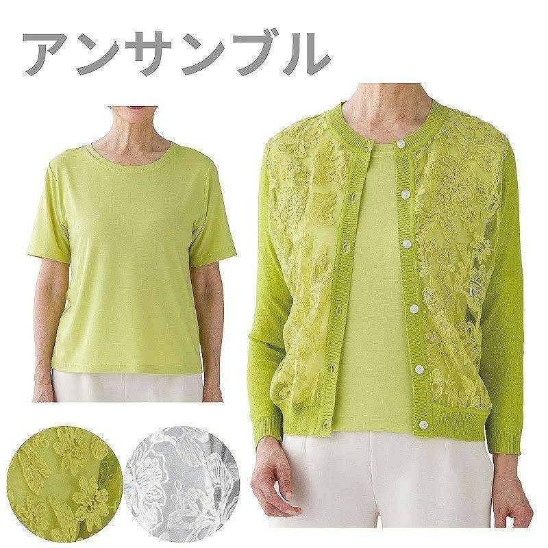 快適な日常生活をお過ごしいただけるためにお役立ていただける商品です着やすさとやさしい工夫のアイテムですアンサンブルだから、コーディネートに悩まなくてすみます着回しのしやすさも魅力的です。前身頃レース切替がおしゃれ!上質でエレガントな雰囲気で、気分も華やぎます。●品名/ニットレース切替アンサンブル●色/グレージュ・グリーン●サイズ/M・L●素材/無地部分:レーヨン80%・ナイロン20%、レース:レーヨン60%・ナイロン40%、インナー:ポリエステル65%・レーヨン35%●生産国/中国製●仕様/手洗い ※柄の出方が異なる場合があります。 長袖 ●説明/アンサンブルだから、コーディネートに悩まなくてすみます着回しのしやすさも魅力的です。前身頃レース切替がおしゃれ!上質でエレガントな雰囲気で、気分も華やぎます。
